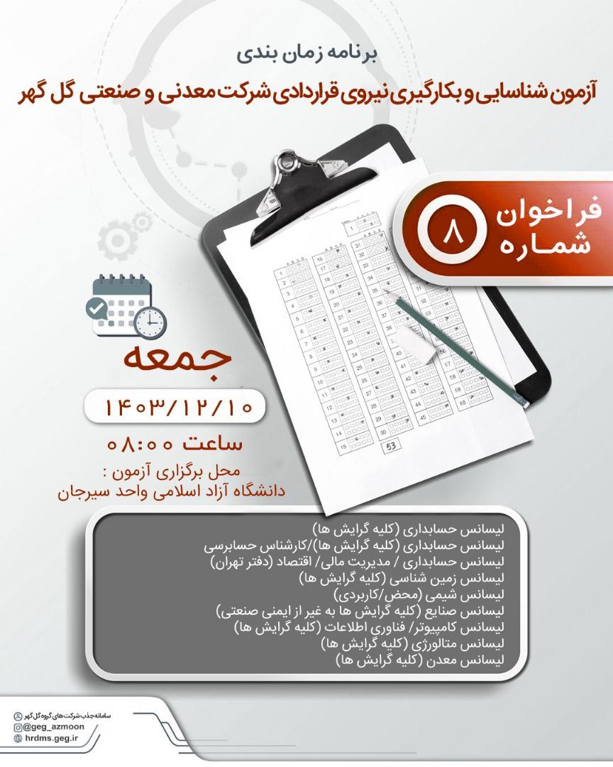 برنامه زمانبندی آزمون و بکارگیری نیروی قراردادی شرکت معدنی و صنعتی گل گهر