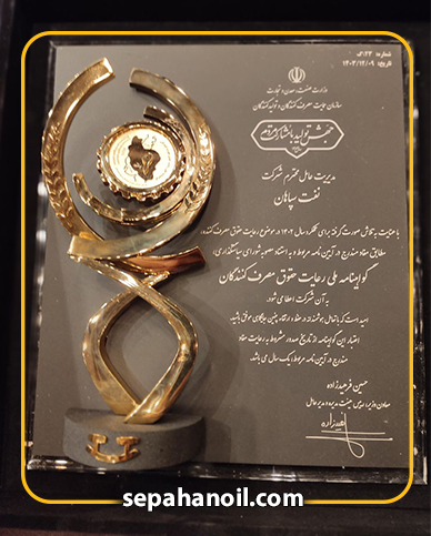 این لوح تقدیر بهپاس “تلاشهای مستمر در رعایت حقوق مصرفکنندگان و ارتقای کیفیت محصولات” به شرکت نفت سپاهان تعلق گرفت.