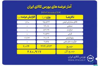 تالار فرعی هم عرضه ۲۰ هزار و ۵۳۷ تن انواع کالا و محصول را تجربه می کند.