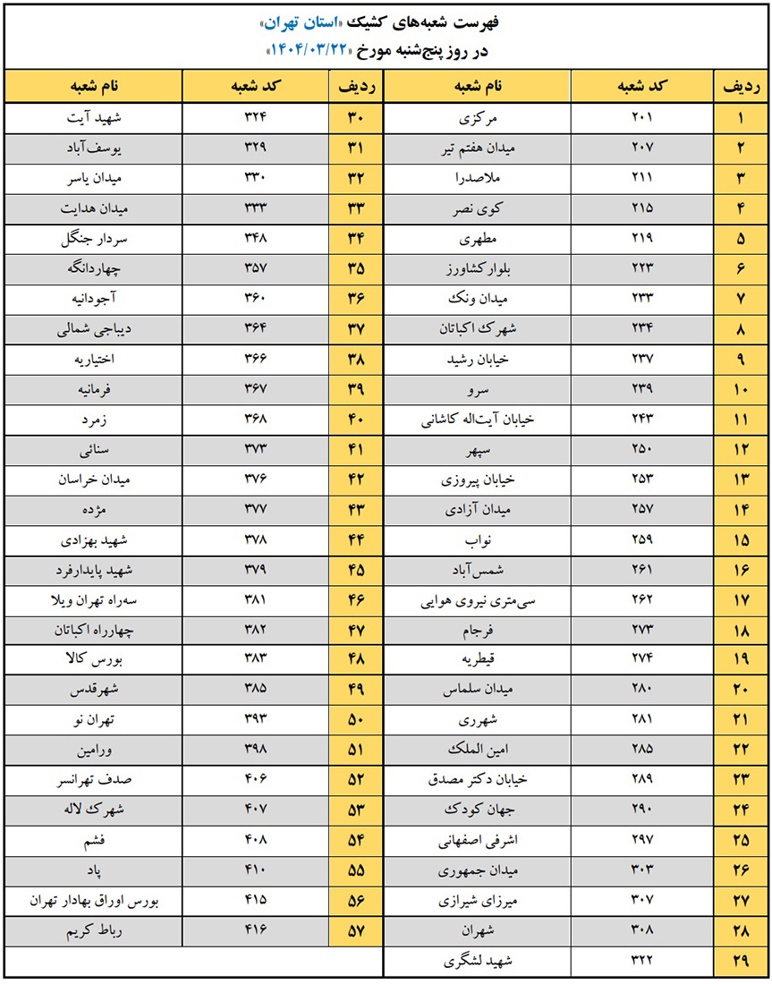 بر این اساس، شعبههای منتخب بانک پاسارگاد در استان تهران در روز پنجشنبه ۲۲خردادماه ۱۴۰۴، طبق فهرست زیر، از ساعت ۷:۰۰ تا ۱۲:۳۰ آماده ارائه خدمات به مشتریان ارجمند خواهند بود.