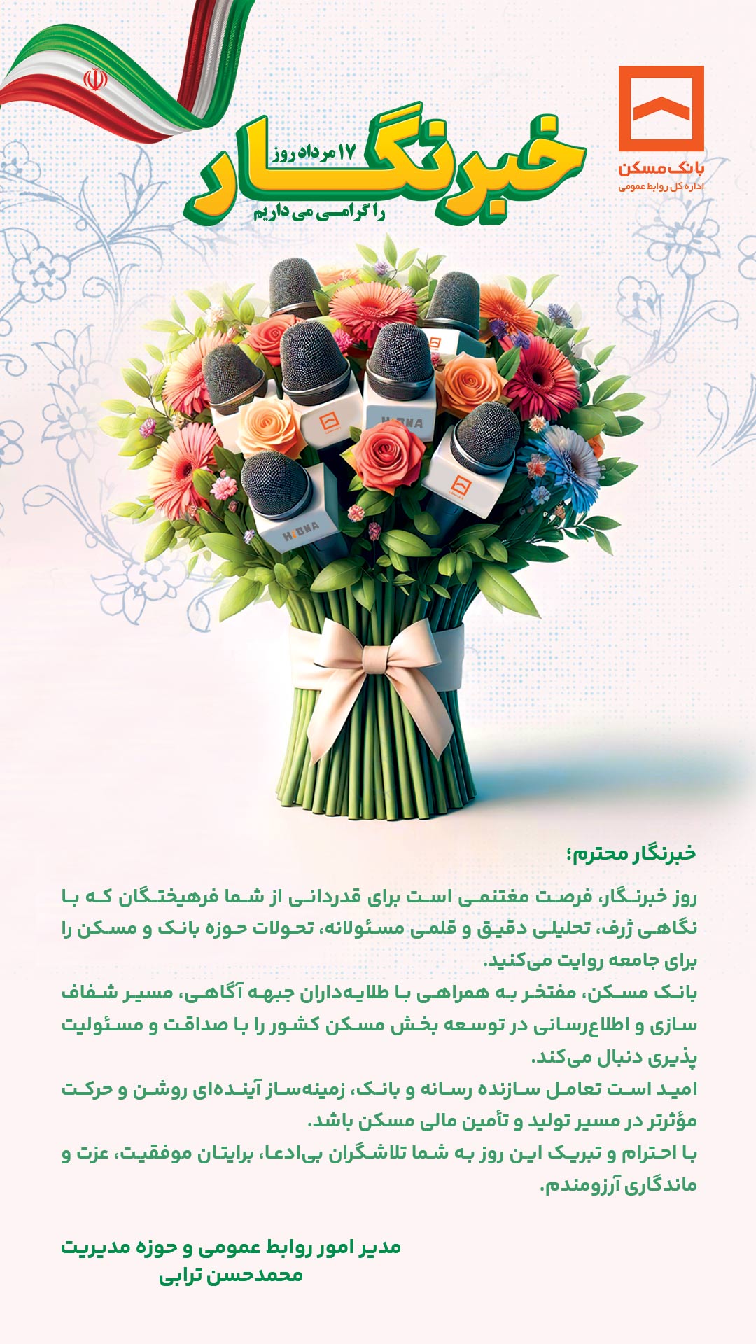 پیام تبریک دکتر محمدحسن ترابی مدیر امور روابط عمومی و حوزه مدیریت بانک مسکن به مناسبت روز خبرنگار