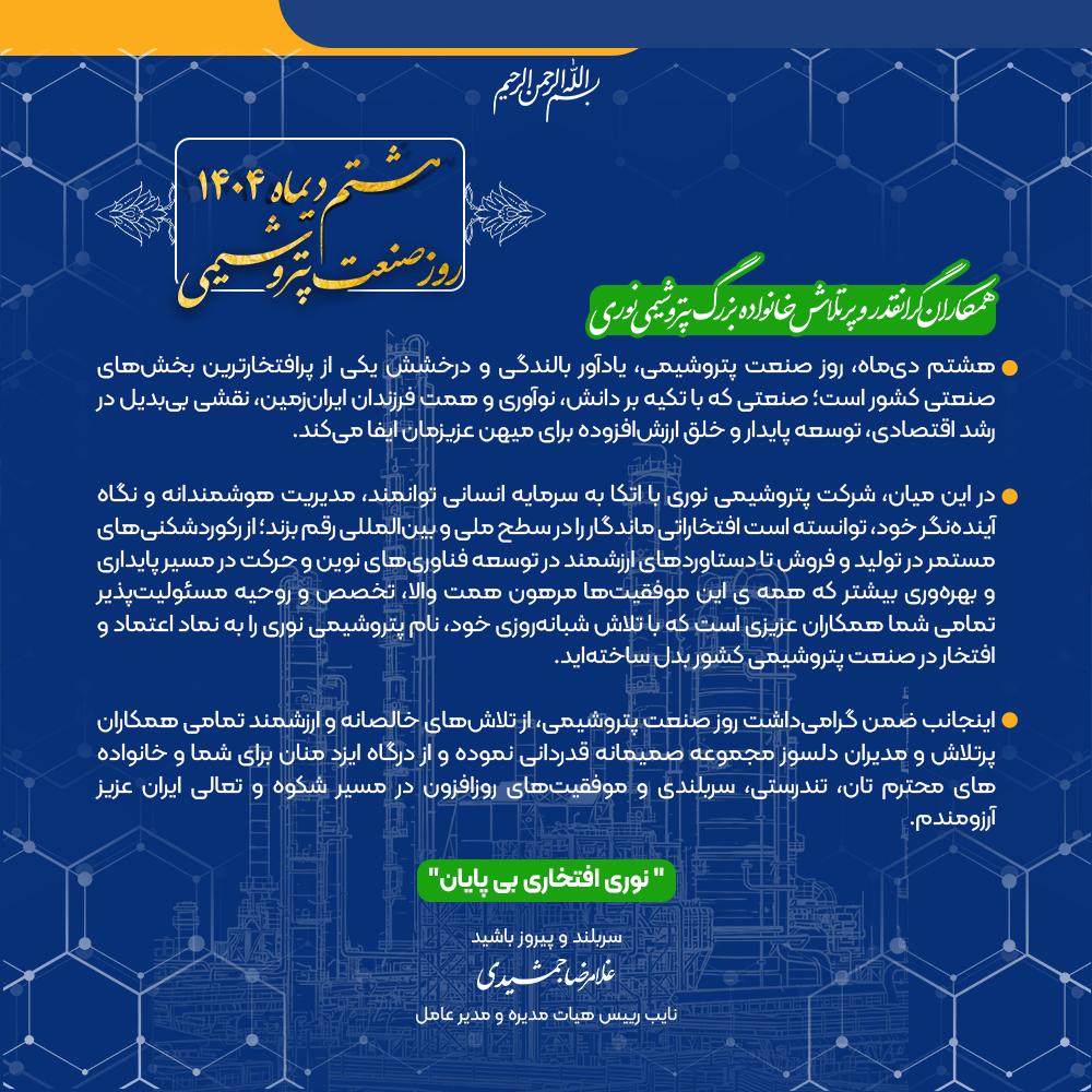 » پیام مدیرعامل پتروشیمی نوری به مناسبت روز صنعت پتروشیمی